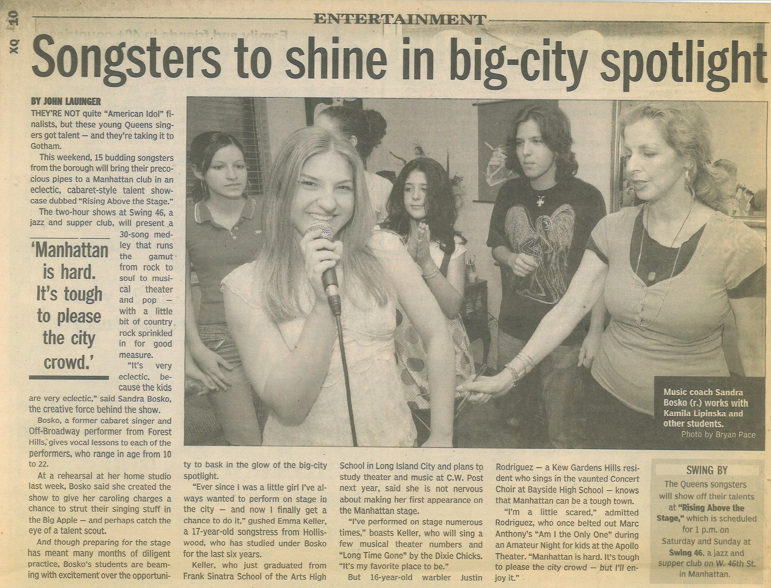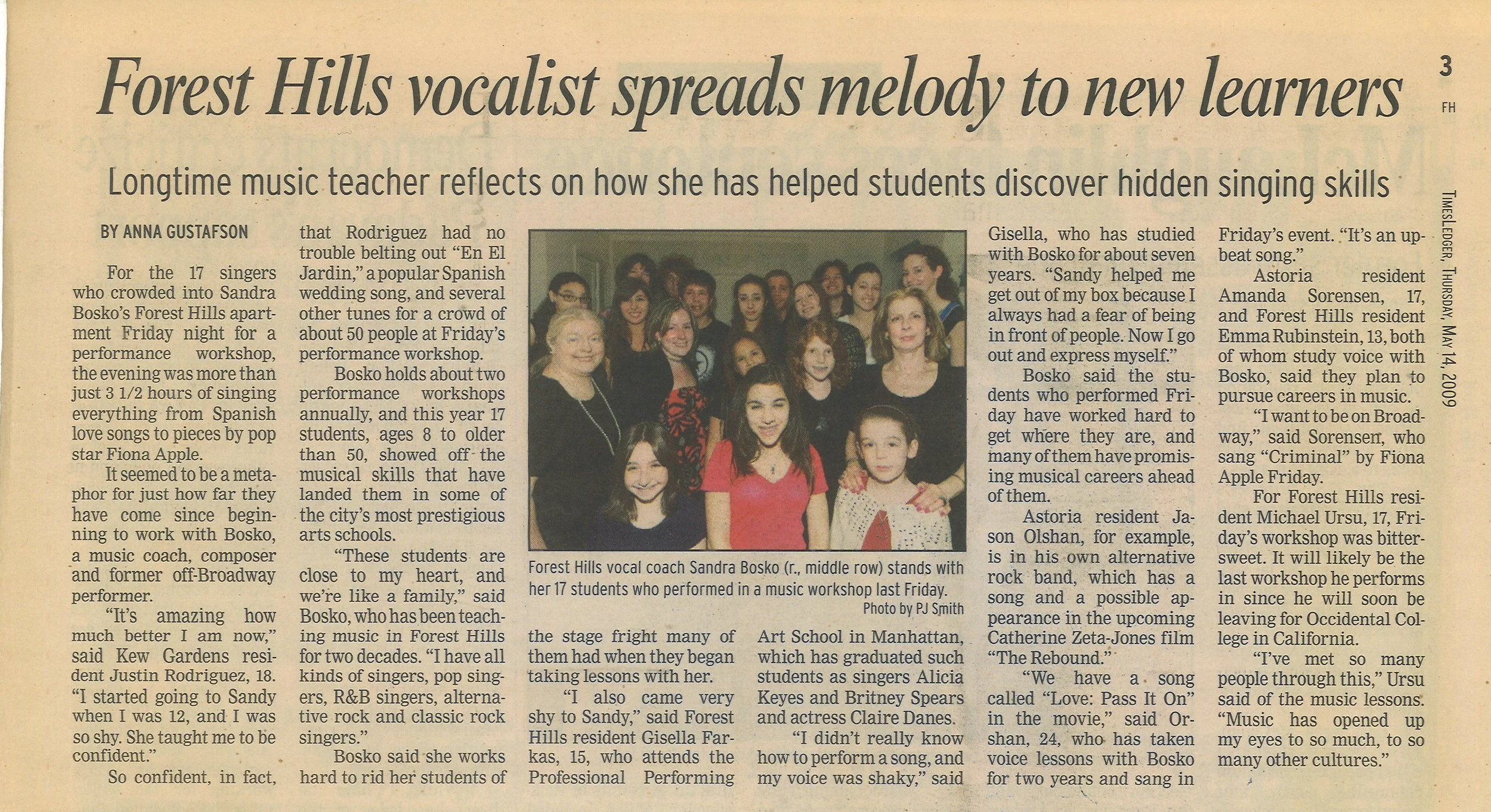 A Times Ledger article features Sandra and describes her ongoing vocal coaching experiences.
